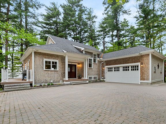 Wisteria Lane is a beautifully maintained waterfront property on the Piscataqua River. The home is nestled in a wooded setting overlooking Mast Cove, with 149' of water frontage, a dock, and a large covered porch to watch the sun set over the river. This home offers open concept living with soaring cathedral ceilings, hardwood flooring, a gas fireplace and an eat-in kitchen with gorgeous oak cabinetry. There is a first floor primary en-suite, as well as a 2nd bedroom and 3/4 guest bath. Upstairs you'll find a charming third bedroom en-suite, so the floor plan is quite flexible. There is a 2-car garage with direct entry into the living space. The basement is partially finished for more living space and has a handy walk-out door. The house is complete with a nice paver driveway, storage under the porch, and a whole-house generator. You'll feel as though you're away from it all, yet less than 4 miles to I-95, minutes to Portsmouth, NH and only about an hour to Boston or Portland, ME. Schedule your private showing today, and start living life on the water!