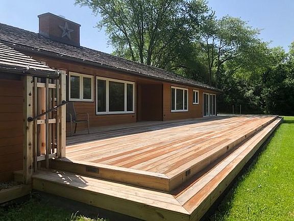 HURRY!!! THIS ONE WILL NOT LAST!!! Super quiet, private, completely redone 3/4 bedroom, 2 bath ranch with 2 car garage. 5.38 acre country retreat with lush green lawns, mature trees, wide open flatter yard situated at the end of a very quiet, winding street off the cul de sac. Surrounded by forest preserve on 3 sides of the lot and access to 75 miles of horse trails at the SW corner of lot. Enormous, special, new wrap-around deck .. 3 sides of the home. You have never seen one like it!! Deck alone is approx. 3500 sq. ft! Deck lighting, step down to yard. Exterior of home is Cedar, Roof is approx. 3 years old .. Perfection Shingles. 2 Skylights in 2 car garage with showroom floor, closets and Tesla fast charger! Living Room has vaulted ceiling with 3 skylights, FP and glass sliders out to enormous new deck. Kitchen boasts quartz counter tops, all stainless steel appliances, Russian Pine cabinets with Maple doors, smaller breakfast bar and eating area. Recessed lighting and hardwood floors throughout the house .. Grab bars in garage and bathrooms, hand rail in bedroom hallway. 2nd bedroom has closet & 3 walls of glass/3 sliders out to deck. Could be used for office/study. Almost everything in the home is 3 years or less and loads of quality. New water softener and water purifier. Beautiful outdoor lighting. Excellent Cook County location with easy access to I-90, Routes 62, 68, 59. Don't wait .. this is a special offering!