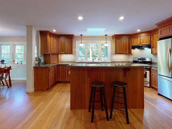 This wonderful Cape Elizabeth home located in the Oakhurst neighborhood has 4+ bedrooms, including the master suite, 3 bathrooms, 2 car oversized garage. Beautiful bright modern kitchen with granite counter tops, an island/breakfast bar and cozy nook for casual dining. Formal dining room and living room w/wood fireplace complete the first floor. The floor plan works nicely for entertaining inside and out. Upstairs you'll find the master suite added when the garage addition was built in 2006 complete with beautiful ensuite bathroom. There are 3 additional bedrooms, an office and another room for whatever you need it for! Beautiful hardwood floors throughout, some made from milled wood taken from the property. The home is heated with a new Regency woodstove and the 4 cords of firewood stacked neatly outside convey with the property. Enjoy the beautifully landscaped yard from the back deck and relish the privacy and peaceful surroundings. Pick your own raspberries in the back yard for fresh fruit delights! The partially finished basement offers more room for home gym or maybe a workshop. This home is part of the Cape Cottage Beach Association, so you'll have access to the Atlantic Ocean on a private beach about a mile away. Just minutes to South Portland and Portland you'll have easy access to the city, shopping, schools and parks while enjoying the quiet of the suburbs. Arrange your showing and don't miss out on this treasure.