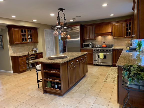 - RoomKitchenFeatures: Pantry, Center Island, Ceramic Tile, Eat-In, Newer, Sliding Door, Floor - Ceramic, Fireplace - Woodburning