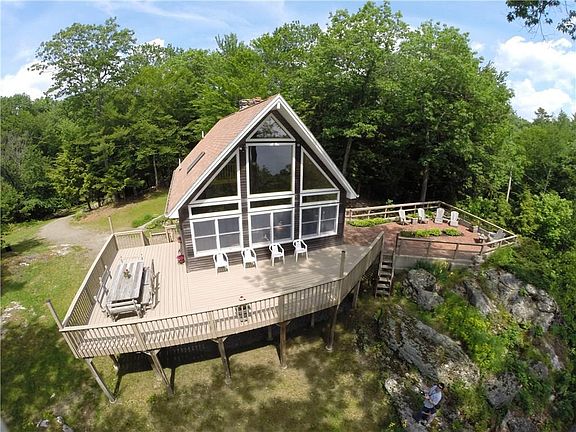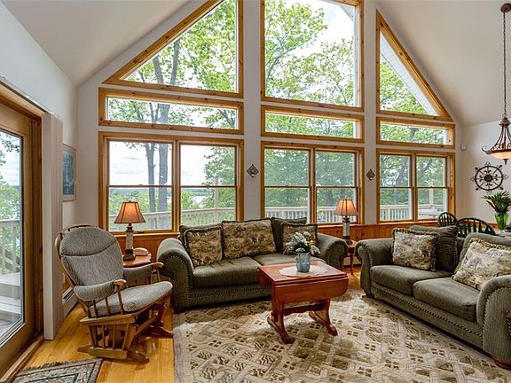 The serenity of being tucked in the woods along with gorgeous lake views make this immaculate home a hidden treasure. The yard features a private pond with natural granite landscaping and perennial beds all around. The wrap-around deck and patio were designed for large family gatherings. The interior offers a custom stone fireplace, open concept living, dining and kitchen area, huge closets, large loft and finished basement. All just minutes from Martins Point boat launch for kayaking and boating.