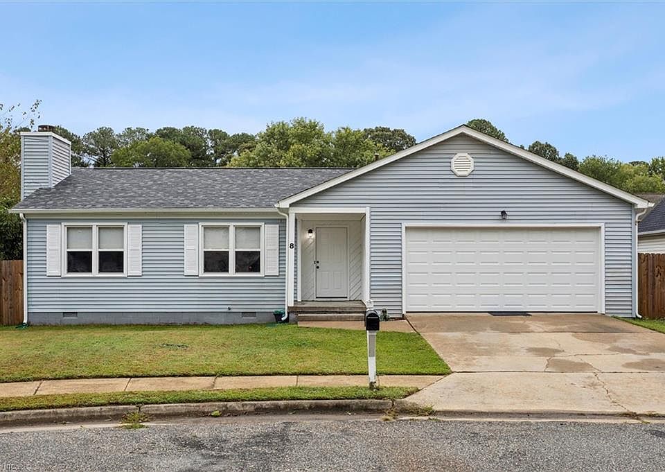 Come see this beautiful 3-bed 2-bath rancher in Hampton. Walk up the front porch steps and enter to see the spacious foyer, wood floors and living room boasting vaulted ceilings and a beautiful wood burning fireplace. Make your way through the dining room to the updated kitchen featuring granite counters, a touchless faucet, stainless steel appliances, and abundant storage. Down the hall you will find generously sized bedrooms and updated bathrooms. The primary suite features an accent wall, a 60-inch LED lighted double vanity with anti-fog mirror, and two closets. Step out onto the back deck to see the fenced in backyard great for hosting a cookout, enjoying outdoor activities, or even planting a garden! Parking won't be an issue with the attached 2 car garage and plenty of driveway space. Roof, HVAC systems, water heater, and kitchen appliances are less than 3 years old. Convenient beaches, interstates, and everything downtown Hampton has to offer. Schedule your showing today!