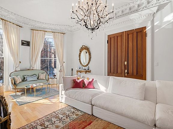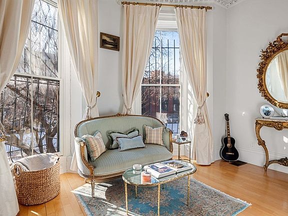 Sophisticated, stunning parlor " Philly" duplex located on the picturesque Worcester Square offering a vibrant lifestyle. This magnificent home is on two levels featuring 2 bedrooms 1.5 bathrooms. Gleaming hardwood floors throughout, soaring high ceilings, central air, and filled with abundant light. The Parlor floor offers a superb layout with an exquisite living room with modern fixtures and chandeliers, custom high-end Bulthaup designed kitchen, Miele appliances, half bathroom and a dining area which leads to a beautiful, oversized deck. The lower floor consists of 2 bedrooms, gorgeous bedroom with contemporary design, modern redesigned full bathroom, the second bedroom is used as an office, access to small deck, laundry and storage in the basement, one direct access parking space deeded.