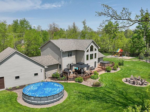 Welcome home to your own private oasis! This home has it all! There is deeded lake access located just steps away from your driveway so you can enjoy what the lake has to offer. Enjoy the property, just over an acre and a half, that boasts an above ground pool, hot tub, huge fenced in garden, fire pit, and playground! 2 story home with 2 bedrooms and a bathroom on the top floor, owner’s suite on the main floor, and another bedroom and bathroom on the lower level. There are also 2 bonus rooms which work great as a home office or workout room! Home also includes a home theater and an amazing bar! Escape the hustle and bustle and embrace the tranquility of country living with all the perks of modern technology with smart lighting, blinds, cameras, and security. Home is a must see!