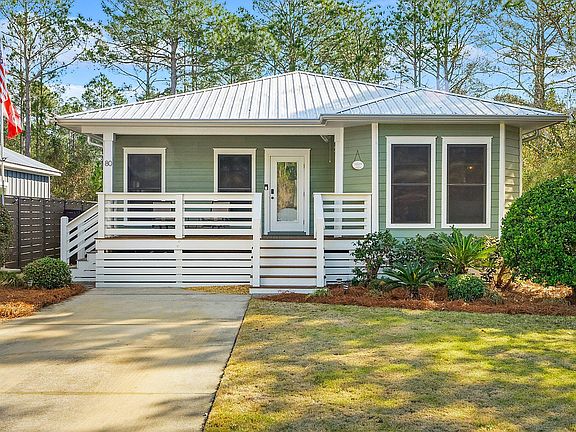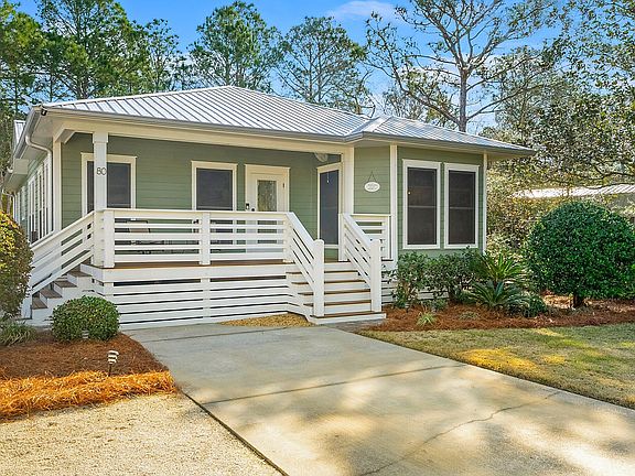 This impeccably remodeled home offers style and durability with premium upgrades. A 2023 metal roof, Trane A/C, Rheem tankless water heater, and updated appliances ensure efficiency. The exterior and interior have been newly painted. Enjoy an extended Trex front porch and screened-in back porch with cafe lighting, fans, and a V-groove ceiling. Inside, LVP flooring, craftsman trim, crown molding, shiplap accents, tray ceilings, and bamboo window treatments add charm. The kitchen features Wexford cabinets, granite, and a built-in Frigidaire Pro Series Column fridge. The master suite boasts a shiplap wall, tray ceiling, and spa-like bath. An 8-ft stained fence, outdoor shower, and storage shed complete the backyard. Just 3 miles to Ed Walline Beach Access and 1 mile to Cessna Boat Ramp.