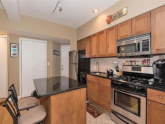 Beautiful studio featuring living room with marble fireplace, dining area, granite counters, S/S appliances, hardwood floors and terrace. Shared yard with elevator building. Close to Path.