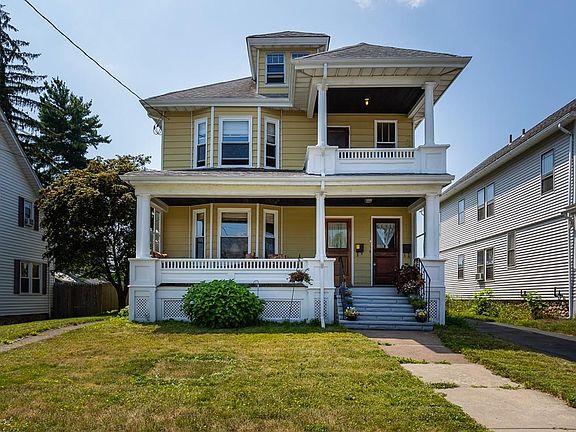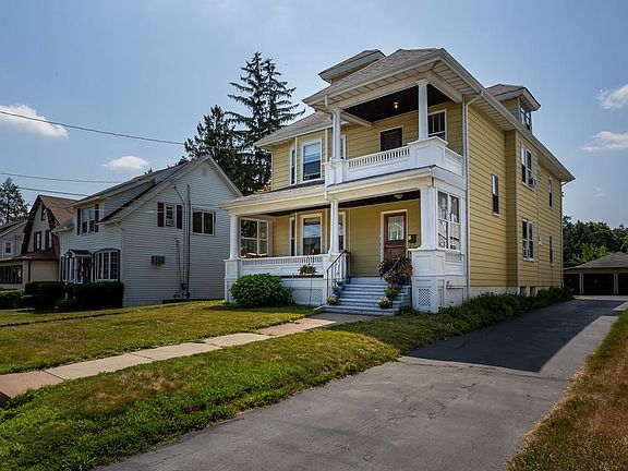 Not to be missed! Fantastic two-family with updated kitchens and baths! Welcoming front porch leads to first floor entry mudroom, living and dining room with beautiful wood floors and detailed woodwork. Updated windows, two bedrooms with wood floors and updated bathroom with tub/shower and tiled floor. Updated, fully applianced kitchen with beautiful cabinets and counters, as well as custom-made kitchen island with stools! Second floor offers much of the same but also includes in-unit laundry and private porch! Newer gas heating systems, as well as hot water heaters. Detached 3-car garage, and south-facing backyard makes a great spot for gardening or catching some rays. Don't miss it!