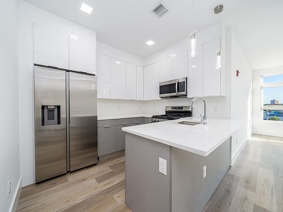 Luxury rental building one block in from BLVD East. Modern layout featuring an open concept one-bedroom. Amenities Gym, Roof Top, Community Center, and garage parking. Washer and Dryer in the unit. No Broker Fee . Bus and Ferry nearby.