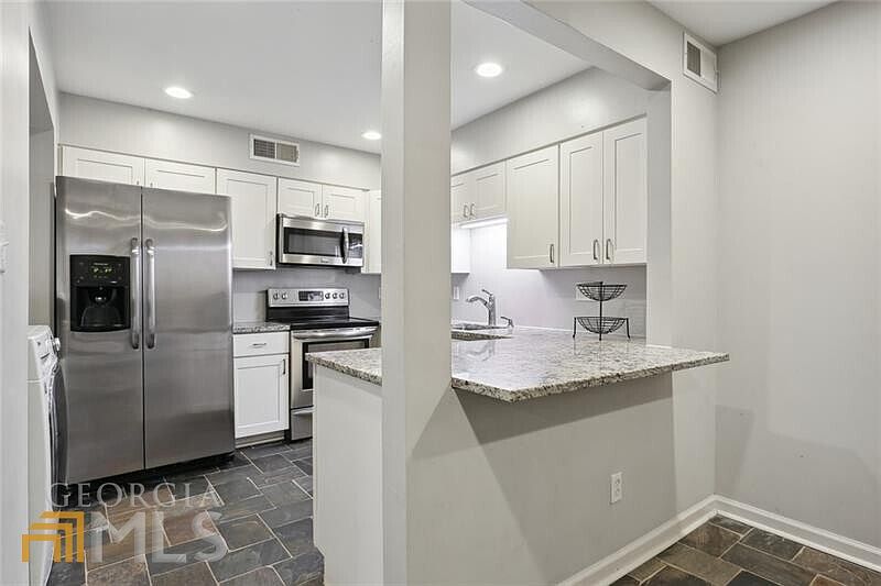 Ever wanted a pool but not the expense and responsibility? This is it! Footsteps from the Adrian pool & clubhouse, you can enjoy the perks of a pool 40 paces from your front door! Major renovations have been completed on this unit including a 100% NEW kitchen with new white cabinetry (not just painted old cabinets,) granite countertops with counter-height breakfast bar that opens to dining room and provides view to the living room! Stainless appliance suite and laundry closet complete the kitchen. The flooring has been replaced throughout with 2 sustainable and very durable flooring materials: slate and engineered hardwood. These beautiful, long-lasting floors sparkle and can be incorporated into any design-style. Recessed lighting and smooth ceilings create a modern, open feel to the space. The sunroom opens to a wooded view and creates a perfect home office without losing a bedroom! Primary en-suite has ample closet space and new lighting. Secondary bedroom shares the hall bath with new lighting. Located in top-rated Morris Brandon Elementary! Cross Creek is a 24-hour (MANNED WITH A HUMAN) GATED community in the heart of Buckhead's westside. Amenities include: an 18-hole, par-3 golf course with pro-shop, 3 swimming pools (the main pool has a life-guard from May-September) and the other two feature renovated clubhouses. 4 tennis courts with 2 striped for pickle ball, a gym, restaurant and bar, on-site HOA office, and walking lanes down the parkway for safe walking! Sited on over 110 acres of natural landscaping, you literally are in a hidden forest just minutes to Buckhead nightlife & business district, Midtown, Downtown and an easy 15 minutes to the airport!
