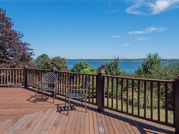 Must see to appreciate the Beauty and Privacy of this Waterview home! Beautifully situated high on a hill, this home has full water view of the Sakonnet River. Accessed through a right of way on a beautiful wooded lot containing a ravine (gully) down a hillside with a pleasant stream babbling through at the bottom. This affords wonderful privacy to the home. Enjoy breakfast in the sun-filled eat-in kitchen, lunch on the large deck, and dinner with family & friends in the formal dining room all while watching the boats ply up & down the river. The two-story living room with cast iron fireplace insert is a warming Norman Rockwell setting for your holiday gatherings. There is a den/TV room 1/2 bath & a large laundry/mud room coming in from the spacious 2-car garage. On the 2nd floor the en suite master bedroom with walk-in closet has a full 180 degree view of the river, two more bedrooms, a full bath, and an artist studio complete this floor. The finished, walk out lower level, wired for 7.1 surround sound, has room for a theater and a pool table. A bonus room & a custom glass-tiled shower & kitchenette make this a great space for guests. Owner built in 2000 the house sits on a one acre lot and recently updated with new roof, new heating, front porch, car charger, and a Net Zero solar farm which means no oil or gas bills and very low electric! In this wonderful location you can take a walk along the forest stream, then stroll to McCorrie Point beach for a swim, paddle, or sail!