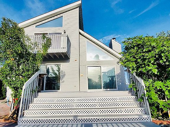 Contact 646-919-0733 for showing. Agents welcome, 2% commission. This spectacular, cul-de-sac waterfront home has 3-beds, 2 full baths, features an impressive modern open concept with floor to ceiling windows looking out into a sun-filled deck, perfect for gatherings, recessed lighting, updated kitchen, master bath, extra large jacuzzi tub, and views to enjoy 24/7! As soon as you step into the 1,911 square-foot two-story house, you will notice the natural lighting pouring in from the skylights and adjacent windows. One bedroom and full bath are on the first level. The dining room sprawls into the large eat-in-kitchen, featuring black/white granite countertops, and backsplash. The living room features hardwood floors, a gas fireplace, and looks out onto the deck and water. Recessed lighting throughout this floor, including a chandelier. Opening up from two glass sliding doors in the kitchen and adjacent living room, the bi-level deck features a natural gas grill, outdoor sink, floating dock, another dock, great for water sports and boating! On the perimeter, a separate custom storage shed, landscaping, and outdoor brick tiles elevate the home. On the second floor, the master bedroom features a balcony overlooking the water. The ensuite master bathroom has double sinks, large jetted jacuzzi tub, a stand up shower, large skylight overhead, and stained glass windows. Adjacent are the walk-in-closet and another bedroom. Attic is also on the same floor. New shingle roof 2011. Exclusions: Dining room mirror. Taxes $8,287/yr. Buyer's agent welcome, 2%. Family member is a Real Estate Agent. Due to large volume, contact is for buyers and buyer's agents only, please. Selling As Is. Contact below takes voicemail and text only.