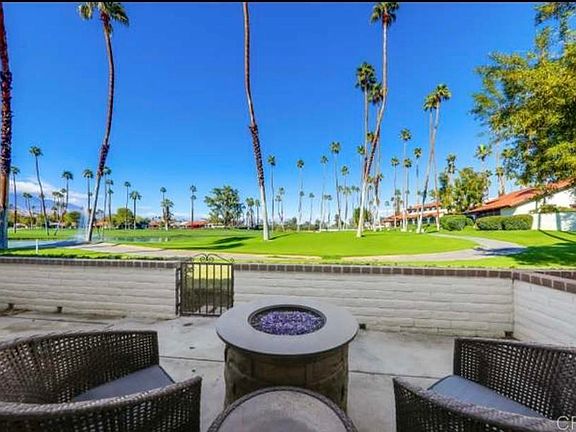 Welcome to 80 Avenida Las Palmas in the heart of Rancho Las Palmas Country Club on the 9th hole of the south course in Rancho Mirage. This contemporary 3-bedroom, 2-bathroom home featuring oversized windows offers stunning mountain views and natural light. There's plenty of space with casual dining area, family room with new TV, additional seating area and a high bar open to the kitchen. Enjoy the private oversized patio space with firepit, heaters, outdoor dining overlooking the pond and clubhouse. Fully furnished and equipped, this home includes an in-unit washer/dryer, air conditioning, 2 car garage. Dive into the resort lifestyle with access to a gym, 26 community pools and spas, and a Ted Robinson-designed 27-hole golf course. Tennis and pickle ball enthusiasts will love the 24 courts available at the nearby Omni Rancho Las Palmas Resort and Spa. This gated community offers 24-hour security, cable TV, trash pick-up, and access to a clubhouse with a bar and restaurant. Located across from The River and attached to the Omni, you'll have dining, shopping, and entertainment right at your doorstep. Experience the perfect blend of comfort and convenience in this vibrant desert oasis!