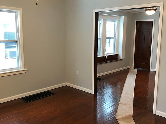 Showing this Saturday 12/21 @ 11am Check out this 3 bed 1 bath home for rent. Home recently renovated fresh coat of paint, new flooring, windows, kitchen and bathroom. Off-street parking, hardwood floors, large walk in master closet with sitting area, private backyard, large basement with storage, also has washer and dryer hookups and enclosed porch. Tenant is responsible for water and utilities. Rent also includes property management.