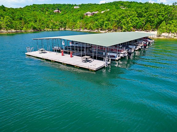 Look no further for the full lake living experience! Marvelous views of Table Rock Lake can be seen from this lovely custom built 5 bed, 2.5 bath, all brick home in a gated lakefront neighborhood. Spend your mornings relaxing in the gazebo while taking in the scenery of Table Rock Lake. Wind down at the end of the day in your private hot tub off the master bedroom. The covered porch, which opens to a lovely patio made of stamped concrete, is the perfect spot for entertaining! This house features beautiful vaulted ceilings with dormers and enormous windows that let in an abundance of natural light. This home also features an open concept kitchen, dining area, and living room. The spacious master bedroom has both a large walk-in closet and an incredible master bathroom with a walk-in shower and soaker tub. In this home you will be delighted with wood burning fireplace, a dining room table that includes 8 seats, 2018 Hot Springs Spa hot tub, smoker, grill, engineered hardwood flooring & tile flooring throughout the first level, all appliances, 24' Bennington tritoon, 10 x 28 boat slip, and Lift, table and 6 chairs on the back patio, master bedroom dresser with mirror, master bedroom recliner, TV in the living room, kitchen bar chairs, living room coffee table and 2 end tables, bedroom 3 has the entire bed and dresser, master has box springs and mattress and 5 th bedroom loft mattress, box springs and dresser. Some of the outstanding improvements include a new roof, water softener, and water heater in 2021, a new capacitor for a 2 1/2 ton air conditioner in 2023, a storage loft in the garage in 2020, and composite decking in 2017. The world-class Silver Dollar City is only a few minutes away, and Branson, Missouri, the center of live entertainment, is only a short drive away. You won't want to miss the opportunity to tour this house because it has so many features. Call me right now to schedule a private showing. Please look at the Video and Matterport Walk-through.