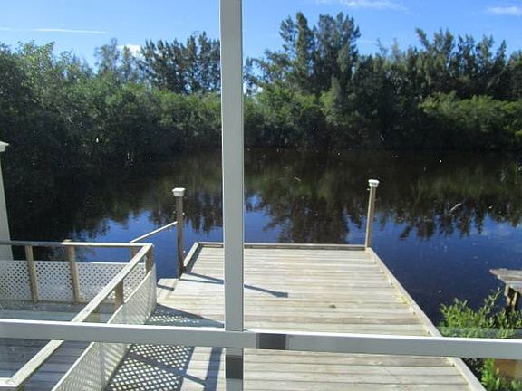 RARE OPPORTUNITY to own a Home on a Lake full of Fish that is fed from Pine Island Sound. This Beautiful home with Vaulted ceilings has 1 bedroom and 1 bathroom and is being sold Turnkey and has a inside washer/dryer, Central A/C with heat, newer stove and microwave and laminate floors throughout. A built in desk, cabinets and closet in the bedroom. In the living room there are built in cabinets and a sliding door that leads to deck and parking for 2+ vehicles. Great Lake views from Bedroom and has a Lakefront deck where you can launch a kayak, paddleboard or small boat and is great for entertaining and fishing. The Spacious Storage Shed keeps all your things dry and secure. Tropical Waters RV Resort is a Gated 55+ RV Park Located on the North end of Pine Island in desirable Bokeelia with a Heated pool, BBQ area, Shuffle Board courts and Club House with Bingo, Pool Table, Library and full kitchen if you want to have a private party. Dogs Allowed (no Aggressive breeds) with park approval. Lot Lease is $730 monthly including sewer, trash and lawn care. Background check required $50 application fee per person. This one won't last long! Buyers are responsible for obtaining all rules, regulations, pet policies, etc., associated with the community from the community manager.