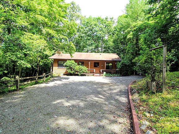 What a perfect getaway -Sweet fully furnished cabin sitting in a woodland forest setting of the western NC mountains. Great layout with large living room featuring massive rock wood burning fireplace opening out onto a wonderful covered sitting area on the wrap around porch. Kitchen/dining area is inviting and very functional while the two bedrooms are large and views of the back acreage. One full bathroom as well as a half bath so that you each have your own space. Great location,easy access, peaceful and super quiet with extra lot available for sale for extra privacy. Small bubbling stream runs along the back side of the properties and there is a neat little workshop space in the stand up crawl space