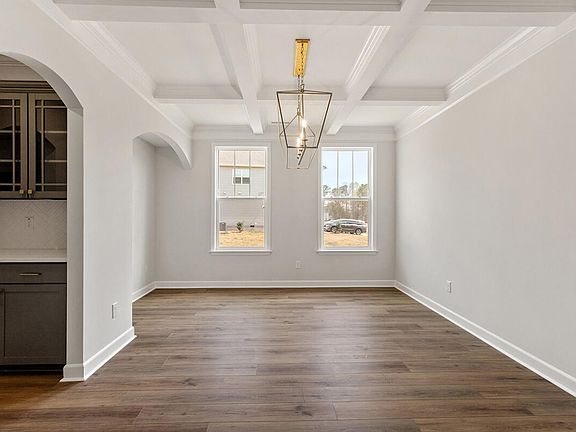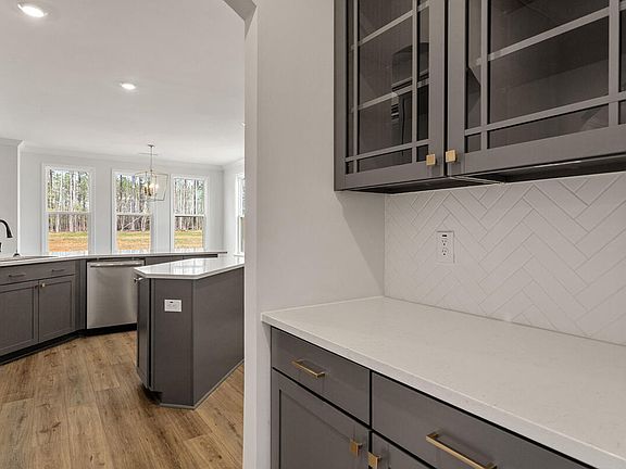 WELCOME TO MAISON RIDGE! Main Level Guest Bedroom! ''Wild Dunes'' LVP Flooring in Open Areas Downstairs! Kitchen: Gas Cooktop & Built-in Oven/Microwave Combo, Custom ''Greyhound'' Painted Cabinets w/Soft Close Feature, Center Island, ''Miami Oro'' Quartz Countertops, ''Arctic White'' Tile Backsplash, Butler's Pantry & Crown! Dining Room: Arched Entry & Coffered Ceiling w/Crown! Primary Bed: offers Sitting Room, Tray Ceiling w/Crown, Plush Carpet & Ceiling Fan! Primary Bath: Tile Flooring, Separate Vanities w/Quartz Countertops, Tiled Shower, Dual Walk in Closets & Two Linen Closets! Great Room: w/Arched Entry, Gas Fireplace, Lots of Windows, Crown, Ceiling Fan & Access to Rear Porch! Home Office w/French Doors! Large Laundry Room w/Cabinets & Granite Folding Counter! Backyard Backs to Wooded Buffer!