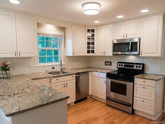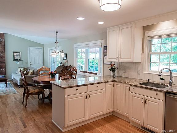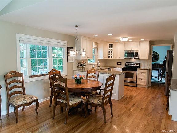 Meticulously maintained four bedroom Colonial located on cul de sac in sidewalk neighborhood close to center of town. If you are looking for curb appeal this house has it all. Beautiful flower beds and perennial plants flank this property. Gorgeous, light-filled remodeled kitchen features Wood Mode cabinets with granite counter tops and stainless steel appliances- as well as a separate built in desk area. Stunning and spacious dining room boasts hardwood floors and wainscoating.. Comfortable family room with cathedral ceiling that has a wood burning fireplace with french doors that lead out to a generous size deck. This deck looks out to a level private backyard perfect for summer relaxation and enjoyment.. The large living room has three windows that allows for plenty of natural light. Upstairs there are four bedrooms with hardwood. The master bedroom has a newly update master bath. The color palette inside and outside of this home thoroughly appeals to today's buyers It is move in ready. This home offers central air, backyard sprinkler system, city sewer, city water.