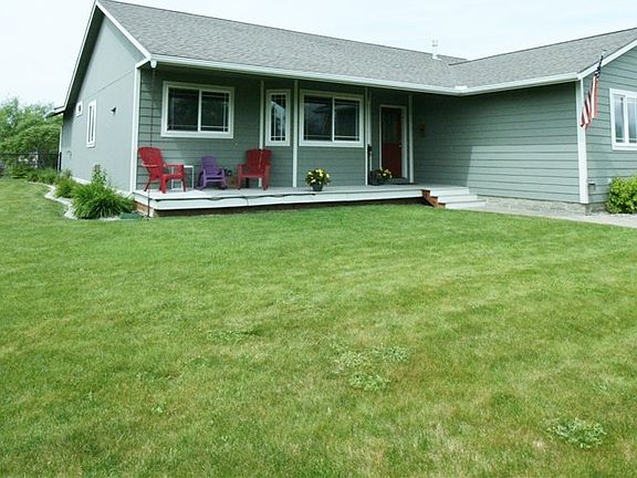 Close to town! This home sits away from other homes which makes it a quiet location w/great views! The roomy floor plan has 3 bedrms w/a split design w/the Great room open to dining & kitchen! Ample counter space & tin back-splash in kitchen! 2 full baths. Awesome deck & patio area w/pergola. Dog Kennel. 2.29 irrigated(KRD)acres w.good perimeter fencing for animals & quality yard fence for pets! Landscaped for privacy w/curbing at the beds. Sprinkler system. 2 storage sheds. Orchard.