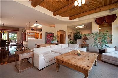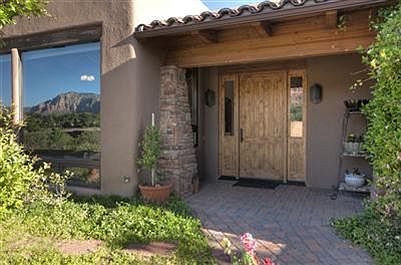 Absolutely impeccable builder's personal custom residence. No expense spared with the finest appointments and amenities. Fabulous, unblockable red rock views from this inviting and spacious single level floorplan. Architecturally designed with eleven foot ceilings and offering vega and latilla accents. Amazing gourmet, island kitchen includes professional Wolf range/oven, Sub zero refrig, Asko dishwasher, gorgeous granite and beautiful cabinetry. Finished three car attached garage plus a two car, detached garage with bathroom is ideal for a studio or guest casita. Professionally landscaped grounds with several open and covered patios. Enjoy the sumptuous master suite which boasts a grand, walk in closet, jetted spa tub and seperate shower for two. Dramatic floor to ceiling stone fireplace with matching exterior stone accents and beautiful Cherry hardwood floors. A convenient study/office is also included. Come enjoy this magnificent home!