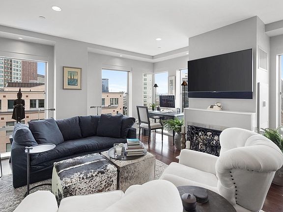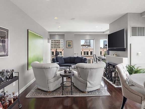 The ultimate pied-a-terre with panoramic views! Experience Boston living at its finest in this fully renovated penthouse corner unit at Folio, a boutique building in the heart of the city. This sun-soaked residence with floor-to-ceiling windows throughout offers both harbor and city views. The luxury suite features custom built-ins, double CA closets, dual sinks, heated floor, separate tub and shower. Open kitchen with granite counters, breakfast bar, Crystal cabinets, stainless appliances, new gas range and microwave. Enjoy a fireplace in the living room, in-unit laundry and deeded storage. Furnishings and on-site garage parking available for purchase. Commuting is a breeze with easy access to Rt. 93, Mass Pike and public transit. Folio amenities include 24/7 concierge and on-site management. HOA covers all utilities except electricity, including central heat and A/C. This prime location is just steps from the Harbor and Greenway, offering quick access to the North End and Seaport.