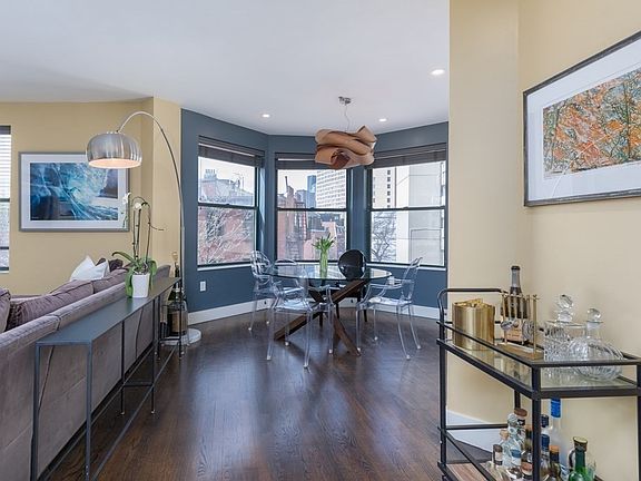Just Listed 2 bedroom 2 bath with GARAGE parking in the rarely available Edgar Allen Poe building. This turn-key home spans 1286 sqft on one floor with three exposures. A flexible kitchen, living and dinning area. The open kitchen features a granite breakfast bar with ample seating, stainless steel appliances, and floor to ceiling cabinets. The living area features a custom media/ library built-in wired for speakers and FIOS. A large primary bedroom features dual closets with custom fittings, room for peloton/home office space. The primary bath is ensuite with dual vanity and marble finishes. Additionally, a second bedroom is large enough for a guest room with a queen or two twin beds. The second bathroom with a shower/tub is accessible from both the living room, guest room, and adjacent to the laundry. This building is tucked away in charming Bay Village between the South End and Back Bay, but has modern features such as an elevator, garage parking, common roof deck and storage