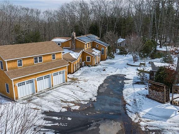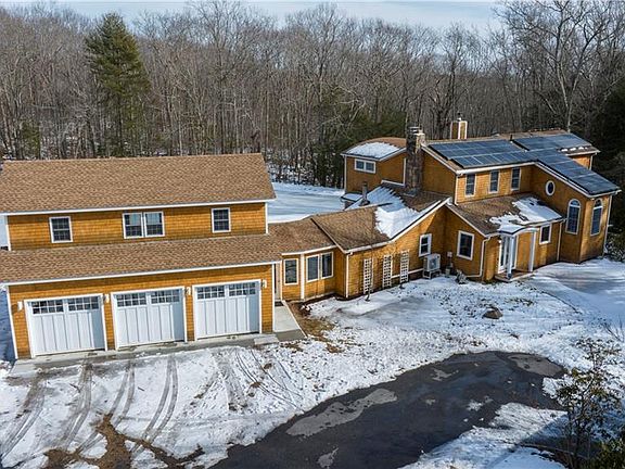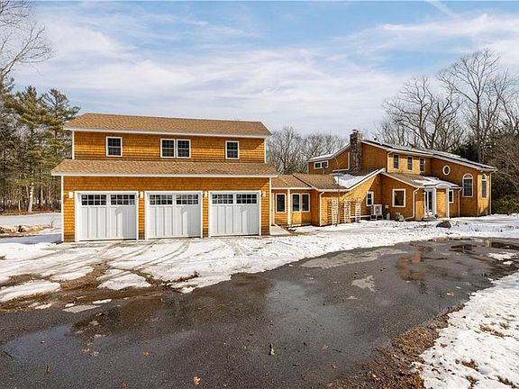 Welcome to 80 Browns Corner Rd, a stunning contemporary single-family home in the heart of West Greenwich, RI located next to the Alton Jones URI campus. Spanning an impressive 3,500+ square feet on 20 wooded acres, this residence provides ample space & privacy for relaxation and entertainment. Boasting 4 spacious bedrooms and 3 full bathrooms w/ 5-car garage and 3 outbuildings and an enclosed garden. A cottage, awaiting your personal touch that would be perfect for in-law or guest house. Step inside to discover the many renovations throughout including a new 3-car garage with bonus room above, a breezeway, refurbished hardwood floors & trim work, freshly painted walls that includes details such as a custom railing. The heart of the home is the kitchen, which is sure to inspire your culinary creativity. Gather around the wood stove or fireplace in the inviting open & light-filled living area. Below you'll find an enclosed 3-season sunroom, a perfect area for morning coffee. The outdoor features are equally impressive, offering a serene escape with a beautifully landscaped front and back yard and solar panels. Enjoy alfresco dining on the deck overlooking your pond, or simply unwind out back by the fire pit. Property is equipped with A/C and a second floor washer and dryer. This home is a true gem, offering a harmonious blend of style, functionality, and outdoor enjoyment. Minutes to gas, grocery and 95, don’t miss the opportunity to make 80 Browns Corner Rd your new address.