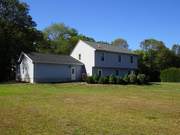 Set on 1.38 acres of landscaped, evergreen-bordered grounds on country road, this well-maintained 3 Bedroom Split-Level Cape style home really shines! ENTERTAIN family & friends in bright & sunny Kitchen with Dining Area & bay window overlooking front landscaping, tiled backsplash, cathedral ceiling with skylight. RELAX in adjoining Living Room with pellet stove, cathedral ceiling & skylight. Half level up is Master Bedroom, 2 additional Bedrooms & Full Bath. Lower Level offers finished area with lots of possibilities -- Family Room/Playroom/Home Office/Exercise Room plus separate Mud Room with Laundry & extra storage. OUTDOOR ACTIVITIES - absolutely! ENJOY above-ground pool and patio area overlooking expansive grassed backyard! Electric Dog Fence stays! Updates include Pellet Stove (2016), Pool (2015), 2-Car Garage (2013), Driveway (2013), Electric Service (2013), Front Walkway/Landscaping (2013). Close to Route 495/24. Commute to Boston or Providence! Come see this awesome home!!