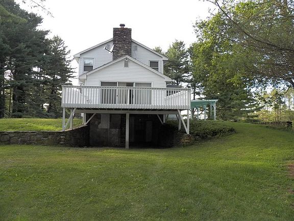 Escape to your private retreat, perfect for entertaining, sitting nicely on a gentle hill, surrounded by rolling lawn. The back covered stone patio overlooks your private, spring fed , stocked 100x300 pond, surrounded with hand built stone walls. The spacious first floor includes kitchen, formal fireplaced living room, dining room, family room and 3 season room, plus first floor bedroom, laundry and 1/2 bath. All rooms are large with loads of natural light. Master bedroom with 2 closets and full bath, 2 additional bedrooms and additional full bath on the second floor. Total square footage is almost 2000 SF. Paved driveway and attached 2 car garage, spotless vinyl siding and attractive stone accents, and 2014 roof provide easy care exterior. Large open deck to overlook your gardens and private pond. This special home is ready for your personal decorating to make it your own.