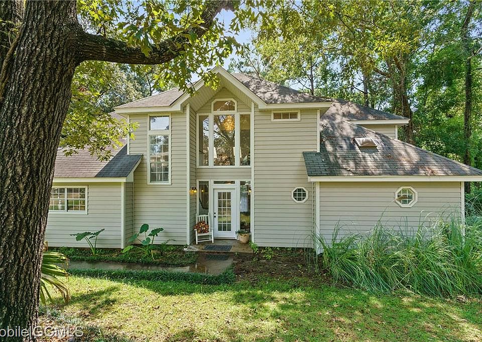 One-of-a-kind floor plan designed by Gladstone Hall. If you are looking for a house for entertaining, lots of charm or just not the "cookie cutter" type...this is it! This floor plan has excellent flow from room to room and you can even see all the living areas from the kitchen. Designed with everyone in mind: Great sized kitchen, ample storage throughout, lots of walk in closets and beautiful dark stairs to accent against the freshly painted white walls, 20 foot ceilings in den, custom cherry wood countertops, crown molding galore, recess lighting, storage shed (with electricity & AC to make every DIYer happy), huge lot fenced. So many fabulous features to list, you must view to appreciate its size and splendor. Great room overlooks sunroom and leads to deck, perfect for outdoor living. Even has a dining table for hanging to enjoy outdoor dining with your favorite people. If you prefer more privacy, there are 3 more "nooks" to sneak away to enjoy your morning coffee or a good book. Perfect view w shady, private oasis that is your back yard! it's a perfectly designed and decorated home. Master bath even has 2 smart light/fans that play your favorite tunes. ALL within an award winning school system. Just minutes to interstate/shopping and 10 minutes to Mobile. ***Listing Agent makes no representation to accuracy of sq. ft. Buyer to verify. Any and all updates are per Seller(s).***