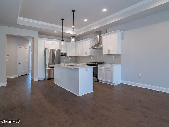 Brand New-Move in Ready! Stunning, Modern, Maintenance-Free, townhome with timeless amenities & 21st century elements in the heart of Latham. Features Inc: 1st Floor Master en Suite, designer kitchen with designer cabinetry, quartz counters, expansive island, tile backsplash, and large pantry. 10 ft ceilings in kitchen, living room and master with trey inlay and moldings. Hardwoods, impressive 8 ft. doors, ceramic tile in baths and laundry room, modern fireplace, walkway & patio pavers, gas grill hook-up, professional landscaping, IG sprinklers and privacy fence between units. Full basement with egress window. Walkable and Gated community. The Village at Shaker Creek redefines convenience. A short stroll to Loudonville's boutiques, coffee, shopping, salons, gyms, restaurants and more!