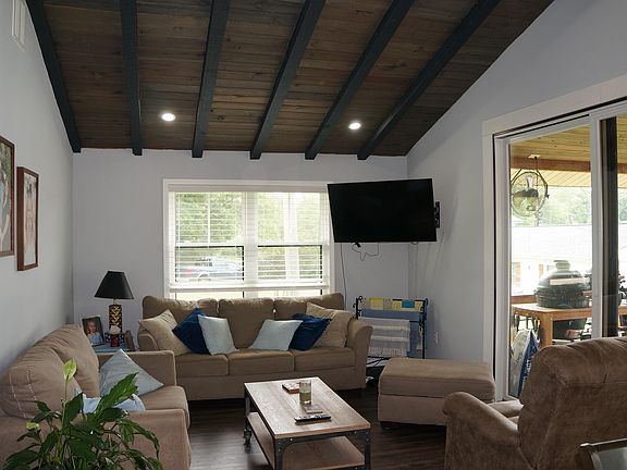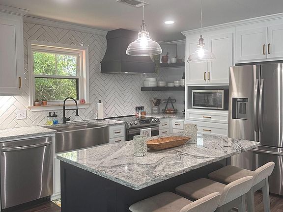 Welcome to this fully remodeled 3 BR/ 2 Full BA home with 113 feet of gorgeous view waterfront property. In 2021 this home had new roof, Hardie-board siding, new HVAC, flooring, electrical & plumbing, new deck & porch, fully remodeled inside complete with granite kitchen & bath countertops, custom cabinetry, all stainless appliances, beautiful wood-stained vaulted ceiling in den & dining areas. Spacious kitchen with granite countertop island. Open concept for kitchen/dining/den areas. Oversized sliding doors in the den allow you to bring the outdoors inside with screen doors. Covered deck/porch wrap around to the side of the home where the deck is open allowing for an awesome entertainment areas. Master Bath has large walk-in shower with dual shower heads. Large detached 2 car garage with HVAC perfect for cars, boats, toys & workshop. Sitting near the end of a cul-de-sac road adds extra privacy. Primarily flat lot with mature trees at water's edge. Riprap sea wall recently installed.