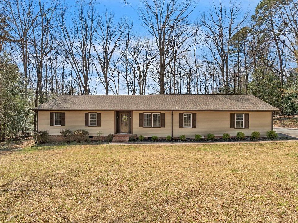 Tucked away in the desirable Country Estates at Carolina Springs Golf Course, this beautiful ranch home sits on a large (NO HOA), level, and private wooded lot, offering the perfect balance of seclusion and convenience. Located just minutes from downtown Fountain Inn, with easy access to I-385 and a short drive to Five Forks, you’ll love the blend of peaceful living with nearby amenities. Plus, it's in close proximity to Rudolph Gordon Schools and Fountain Inn High School! Designed with entertaining in mind, this home features both formal and breakfast dining rooms, seamlessly flowing into the spacious family room with vaulted ceilings. Step outside to a large deck, shaded by mature trees, perfect for relaxing or hosting gatherings. With ample acreage, there’s plenty of space for RVs, boats, and additional parking. The property also includes a large outdoor shed that conveys with the sale. Inside, you’ll find stunning hardwood floors, new carpet and fresh paint throughout, granite countertops, and a generously sized laundry room. The primary suite provides a serene retreat, completing this fantastic home. Large family room has brick fireplace with new gas logs. Owners recently added a new roof, painted the exterior and encapsulated the crawl space (10-Year Warranty will be transferred). Large shed and a home warranty that covers all major systems and appliances comes with the home.Don’t miss this rare opportunity to own a private oasis in a sought-after golf course community—schedule your showing today!