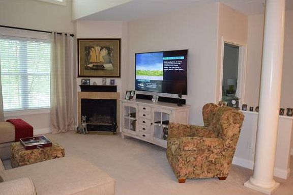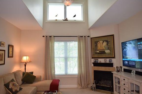 Fabulous second floor condo offering the largest master bedroom floor plan available. Nestled with woods behind the building, this home boasts of quality and style throughout. Open concept with two bedrooms separated by a large, fire placed living room. Bring in the natural daylight with the extra windows that seem to climb the vaulted ceiling in the living room pouring light throughout. Nicely appointed kitchen with stainless appliances, upgraded cabinetry and bathroom fixtures/faucets and ceiling fans. One car detached garage offers more storage combined with generous storage inside the condo. Convenience and lifestyle that includes a state of the art clubhouse/pool/theater make this a wonderful place to call home.