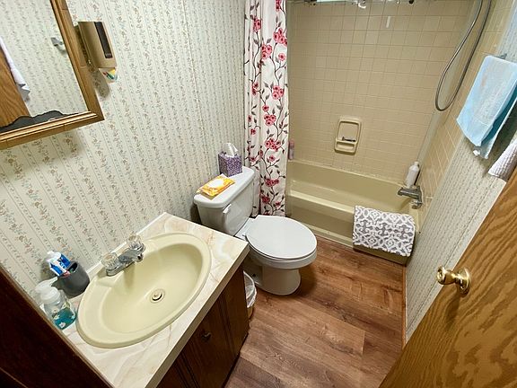 What a hidden Gem, come enjoy your private retreat on Pine Lake. Gated beach area, with Volleyball and gathering area for owners, use. Property has a larger lot with approx 125' of water frontage, with dock and 10 lake shares. Homes has 2 bedrooms,2 baths, a back deck, and a covered front sitting area. New flooring in living area, bath 1,2, and master bedroom owner is leaving the rest of the boxed flooring for the new owner. New vanity in master with large walk-in closet. Purchase for your everyday use or weekend use, very relaxing atopshpere.