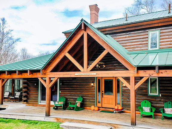 Stunning log home located in beautiful Western Maine! Located in the heart of Western Maine's outdoor recreation region, you'll find this well constructed log home boasting 5 bedrooms, 2.5 baths, over 3,500 SF, a large stone fireplace, impressive post and beam entrance, cozy sunroom and lots of garage space! Touring the property, it's easy to see the current owners have taken excellent care throughout their many years of ownership. Walking from the paved parking area into the house you cannot ignore the large timber frame entrance/covered front porch. The house has a smooth flow from the main entry, through the spacious kitchen and into the dining and in living room area. Making your way into the living room/dining area you are met with tall cathedral ceilings, glass sliders to the covered back deck and a warm feel seeing the large stone fireplace and ample seating room, great for large gatherings. The sunroom also provides a large space for gathering with lots of natural light and a cozy feel. There is plenty of sleeping space from the 3 bedrooms on the 2nd level, one on the main level and another in the finished basement. This home has an attached 2-bay garage with direct entry to living space through the large breezeway/mudroom as well as a large 33'x44' detached 3-bay garage great for vehicle storage or a workshop! Over the detached garage there is a 700+ square foot apartment, which consists of a 1 bedroom/1-bathroom open concept style living space complete with a private 2nd story deck. The apartment would be a great in-law apartment or rental for added income. With a robust metal roof, on-demand generator which turns on if the power goes out, multiple heating sources and ample garage space, this property is Maine ready and ready for its new owners! Enjoy having direct snowmobile/ATV trail access as well as being less than 40 mins away from Sugarloaf AND Saddleback Ski Areas! Call today for a private showing and let's explore Western Maine!
