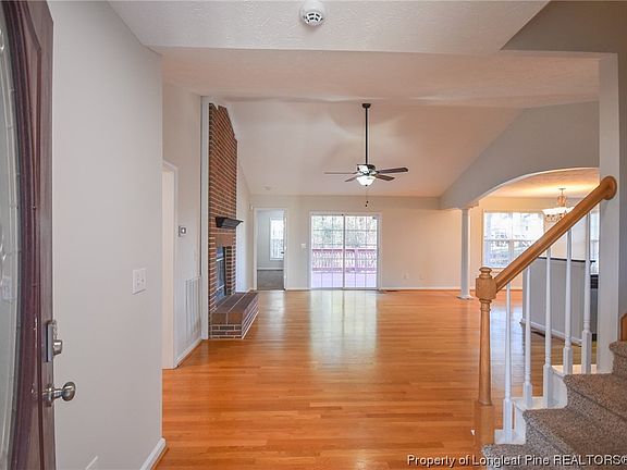 Harnett Co - Richmond Park Neighborhood! Centrally located to shopping and restaurants. Fully fenced ranch home with 4 bedrooms 3 full bathrooms! Step into this open concept great room/kitchen/eating space combo. Featuring hardwood floors throughout 1st floor living space and a lovely floor to ceiling wood burning brick fireplace. Sliding glass doors overlooking the deck/backyard. Kitchen featuring stainless steel appliances and island open to living space functionally for great hosting! Master suite with his and hers closets, laundry on main floor near the 2nd and 3rd bedrooms with a full bath in between. Upstairs above the garage is the 4th bedroom with full bathroom! Freshly painted throughout and brand new carpet in the 3 bedrooms.
