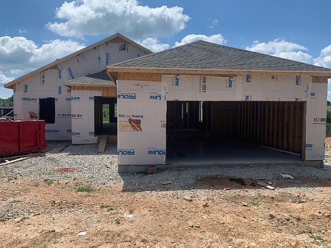 New Construction -Single Level 3 bedroom 2 bath home with large patio allows you to enjoy the Ozark beauty and view overlooking a pasture. Great location and easy access to schools and shopping. Finish work will be with laminate flooring, carpet, granite countertops, 4 inch base trim, nice cabinetry and fixtures. Large lot. Plus the Garage is 23x24. If you are wanting to select finishes, don't wait too long.