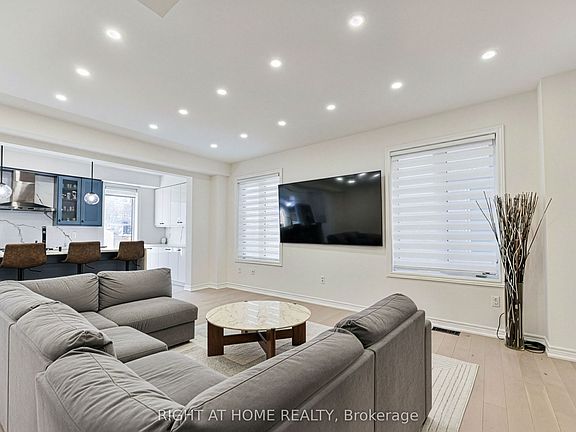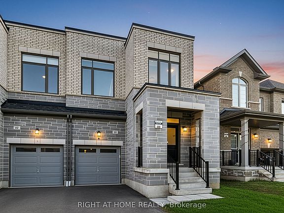 Welcome to this stunning 1950 sq ft upgraded home perfectly positioned near Brock Street & Taunton Road, in one of Whitby's most sought-after growth corridors. This modern residence showcases premium finishes throughout, including beautiful hardwood flooring across the main level, complemented by an elegant upgraded oak staircase.The gourmet kitchen is a chef's dream featuring upgraded cabinets, stunning quartz countertops with waterfall edge and seamless backsplash, sleek black stainless steel appliances including, sophisticated tile flooring. Smooth ceilings on the main level add to the contemporary appeal. Retreat to the luxurious master suite boasting 10ft coffered ceilings, walk-in closet plus additional closet, and a spa-inspired 4pc ensuite with frameless glass shower, freestanding soaker tub, and quartz countertops.The property offers exceptional convenience with a 2-car driveway and no sidewalk meaning no snow shovelling obligations! The upgraded side entrance provides excellent basement apartment potential for additional income. Located in Whitby's booming west end, you're minutes from Walmart Super Centre, Home Depot, countless restaurants, and the luxurious Therma Spa. Enjoy nearby Cullen Central Park with scenic hiking trails, sports fields, and pickleball courts. Quick access to Highway 412 connects you to the newly toll-free 407 and 401, while Whitby GO Station offers easy commuting.This rapidly developing area features top-rated schools including Donald Wilson Secondary (Fraser Institute rating: 8.0), with new schools under construction to serve the growing community. Whitby's population is projected to reach 240,000 by 2051, making this an excellent investment opportunity. Move-in ready with designer touches through out this home, won't last long!