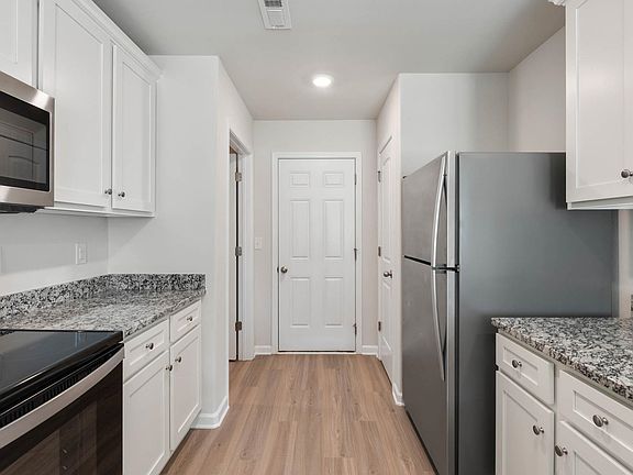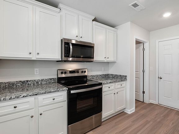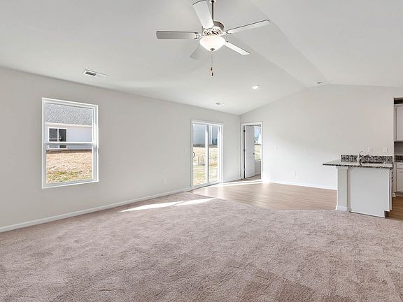 The one-story Alamance features a stylish and functional layout with 3 bedrooms, 2 bathrooms, a large living room and more. The kitchen with its granite countertops, oversized wood cabinetry, full suite of energy-efficient appliances and easy access to the dining room, creates a functional area for cooking meals. In addition, this home comes with desirable upgrades included at no extra cost such as luxury vinyl-plank flooring, a Wi-Fi-enabled garage door opener, programmable thermostat and more.
