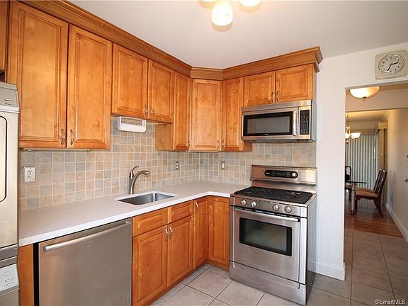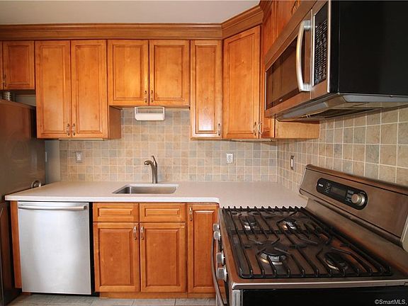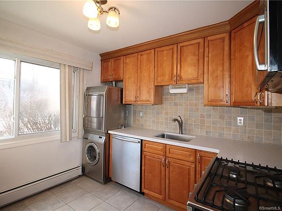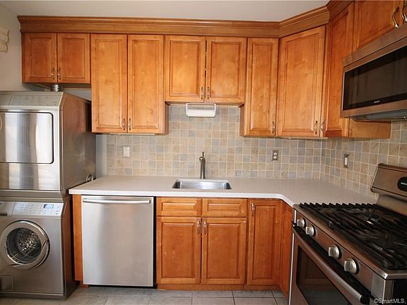 Professionally remodeled ground floor ranch condo with quality Stainless steel appliances including : Bosch gass stove & Microwave, Miele Washer and Dryer, Fisher & Paykel Refrigerator. Unit has well maintained hardwood floors throughout along with attractive tile floors in kitchen and bath. Bath was totally remodeled as well with oversized walk-in shower and new fixtures. All windows and sliders have newer thermopane glass. Association fees include heat and hot water. Slider from dining area leads to large patio area only one step from level spacious grounds. Complex also contains well maintained (two) inground pool areas for both adults and children along with a seperate fenced in children's playground. Come enjoy living in this spacious and conveniently located complex on over 10 acres of parkland. Close to train, bus and highway for an excellent commute throughout Fairfield County and to NYC. Complex is pet friendly and also FHA approved.
