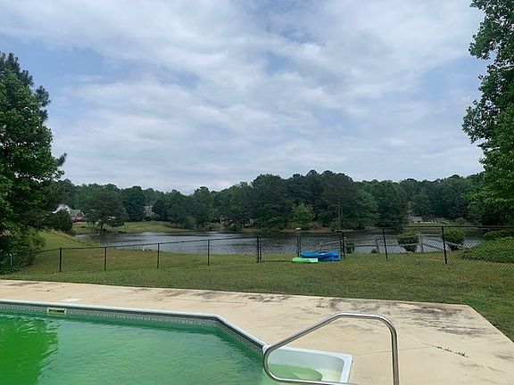 Come home to The Cove at Lake Harding! This all brick home has the perfect layout with a grand 2 story entry foyer, vaulted living room ceilings with tons of natural light. Oversize dining room with trey ceilings. Eat-in kitchen with granite countertops, breakfast bar, in wall oven and glass cooktop. Split floor plan with master suite on separate side of house. Large master suite and master bathroom with bathtub, shower and vanity. Guest suite with bathroom off of living room with two doors for privacy. Upstairs features a large bonus room. Overside porch with vaulted ceiling overlooks the salt water pool and pond. 2 car attached garage. 1,250 sq ft heated and cooled outbuild features 2 garage doors. This home is being sold AS-IS, it needs a little TLC.