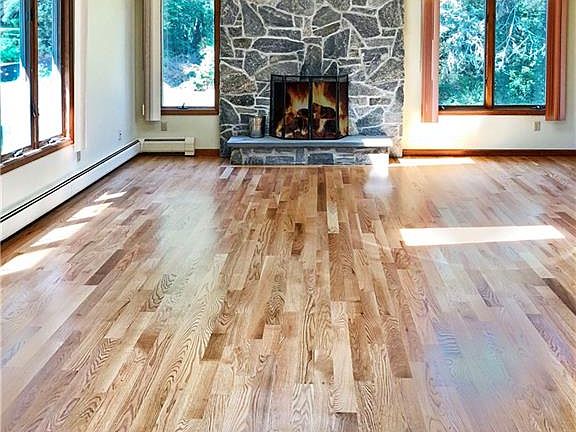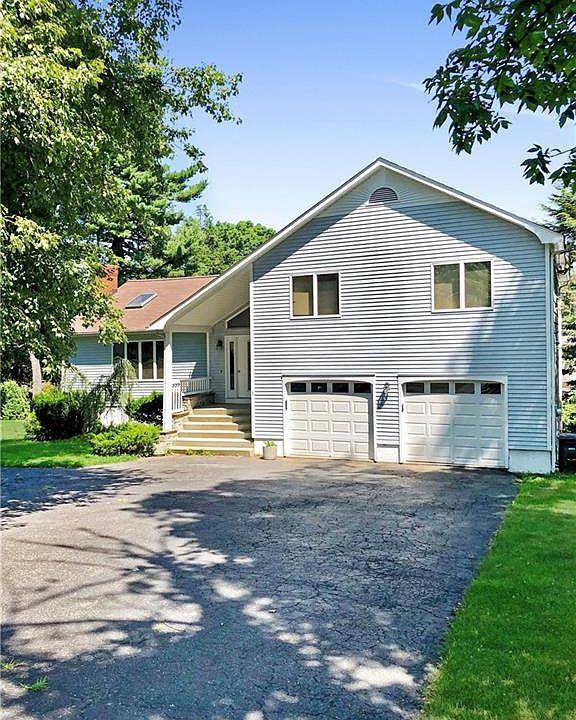 So many possibilities for this contemporary split level home located on a cul-de-sac on the Stratford/Trumbull line. Gorgeous hardwood floors are newly installed. Home offers 4 possible levels of living and heating/cooling has 4 zones. Bright, light and airy rooms thanks to high ceilings and sky-lights. Living room boasts large windows, high ceilings, sky-light, and stone fireplace. Custom cabinets in large spacious kitchen with built in desk and sliding door that leads to deck. Head down a few more steps and enter the large family room with 2nd fireplace and head outside to 2nd deck. 1/2 bath, office, and laundry are also located on lower level. Head to upper level and you'll find a LARGE Master BR suite with full bath, walk-in closet and a laundry chute. A second full bath and 2 good sized bedrooms with large closets are also on upper level. Large and private beautiful yard. Basement has possible In-Law setup (plumbing is roughed in for bath and kitchen) with walkout sliders to patio. Basement also has a fireplace and cabinets ready to be used by new owner. Come see for yourself all this home has to offer.
