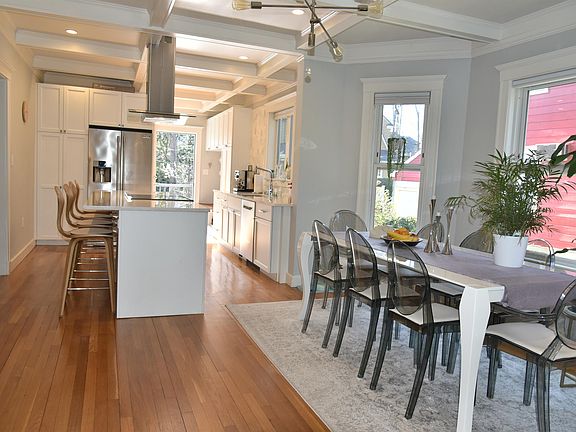 Location location location Pondside first floor 2 bed, 1 bath custom unit with central AC available August 1st! Don't miss this one!! Located on the highly desirable Dunster Rd., this is a beautiful first floor unit with parking and direct access to spacious back yard. Front entry foyer includes a large closet and open access to living room and kitchen. Custom kitchen and include over-sized quartz island with slide in electric range, vented hood fan, plenty of counter space and seating for four. Full wall backsplash on sink wall, built in pantry and coiffured ceiling. Dinning area adjoining kitchen includes bay window with space for large table and original built in for storage. Rear mud room with bench, shoe cubbies, and storage makes for incredibly useful direct unit entrance. Bathroom includes floor to ceiling tiles on one wall, glass tiles on shower wall, open storage shelving, bathtub has a Kohler multi head shower and handheld. Linen closet for additional storage in hallway outside bathroom and between bedrooms. Driveway parking for 1 car and ample on street parking available (no resident permit needed). Hardwood floors throughout! Nest smart thermostat and central A/C. Large fenced yard. Private laundry (not coin-op!!) and large storage room in the basement. Tenant pays all utilities (gas, electric and cable/internet). First month's rent ($3,750) and security deposit ($3,750) plus $25 application fee per adult. Lease through July 31, 2021 and good credit required. No Broker fee! Cat okay, dog may be considered case by case with owner approval for an additional $150/month. One pet permitted maximum. Pondside 2 family on the popular Dunster Rd. Common front deck and entry leads to a small entry foyer with access to front door of both units.