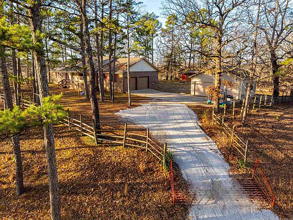 3 bedroom, 2 bath home on a hill overlooking 10 +/- wooded acres and a stocked pond!This brick home has a cute front porch where you can sit and overlook the pond, listen to the birds chirp, and watch the kids play while letting the fur babies run!When you walk inside the home, you will enter the front door and see the nice open living room, open to the dining room, where you see doors leading out back to the screened-in back porch where you can sit and enjoy those lovely sunrises!For the kitchen, you have lots of counter space and plenty of room to add an island if you want to.Off the kitchen is the pantry, then you walk right into the laundry room and a door leading out to the attached garage. Off the living room, you go down the hall and have 2 nice bedrooms and a full bath. Then, you have a nice-sized main bedroom with a main bathroom.This home has hardwood flooring, many updates, and fresh paint, and it is move-in ready!For the outside, you have a detached 2-car garage/shop with a dog run on the backside, and then you have a little she-shed-out back.This property is fenced so that one could have a few animals!This home is about 2 miles from Cave City, Arkansas.