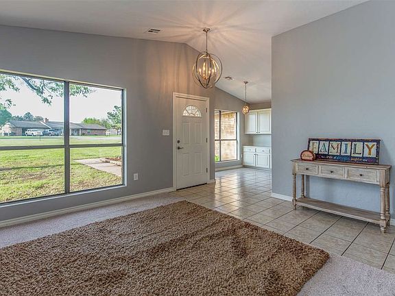 This approx. 2370 sq. ft. home is situated on a large 1 acre lot in a cul-de-sac within Wichita Mountain Estates. The home has 2 living areas with the larger having a wood burning fireplace and wet bar for entertaining. Eat-in dining has a built-in buffet with storage. Upgraded features include new roof on the house and shed in 2021, interior & exterior paint, carpet, new appliances, granite countertops, tiled backsplash, painted cabinetry, plus new interior doors & fixtures throughout. Yard is fenced with mature trees. House and shed were resided in 2021. A wood framed, metal roofed shed on the back of the property. Located in desirable Elgin School District and just a short commute to Lawton/Ft. Sill.