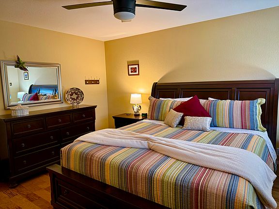 Gorgeous views from every room in this beautiful & private home which has all the amenities and is 5 minutes to restaurants and shopping, galleries etc. in Uptown Sedona. Enjoy viewing decks on both levels which include seating and a firepit is also on the lower level. Surrounded by trees and quiet streets, this house is comfortably furnished including a recreation room with its own bar, table tennis/air hockey table and smart TV. There is an electric FP in living room which is open to the dining room and kitchen. This 2-story house has 2 master bedrooms with king size beds and twin over full bunk beds in the 3rd bedroom with a full size trundle bed and play area for the kids. Two bathrooms have lovely walk in showers and there is a jacuzzi tub in the upstairs master bath. There is a new queen size couch bed in the rec room and a total of 3 smart TV's throughout plus a gas barbeque on the back patio. This home sleeps 8 very comfortably and is also great for family living and entertaining. It is beautifully and comfortably furnished throughout. Owner pays for water and trash. Renter pays for electric, gas and wifi. 12 month lease. This property is non-smoking, non-vaping and no illicit drugs are allowed. One well-trained dog is allowed. No cats, birds or reptiles allowed. No subletting is allowed.