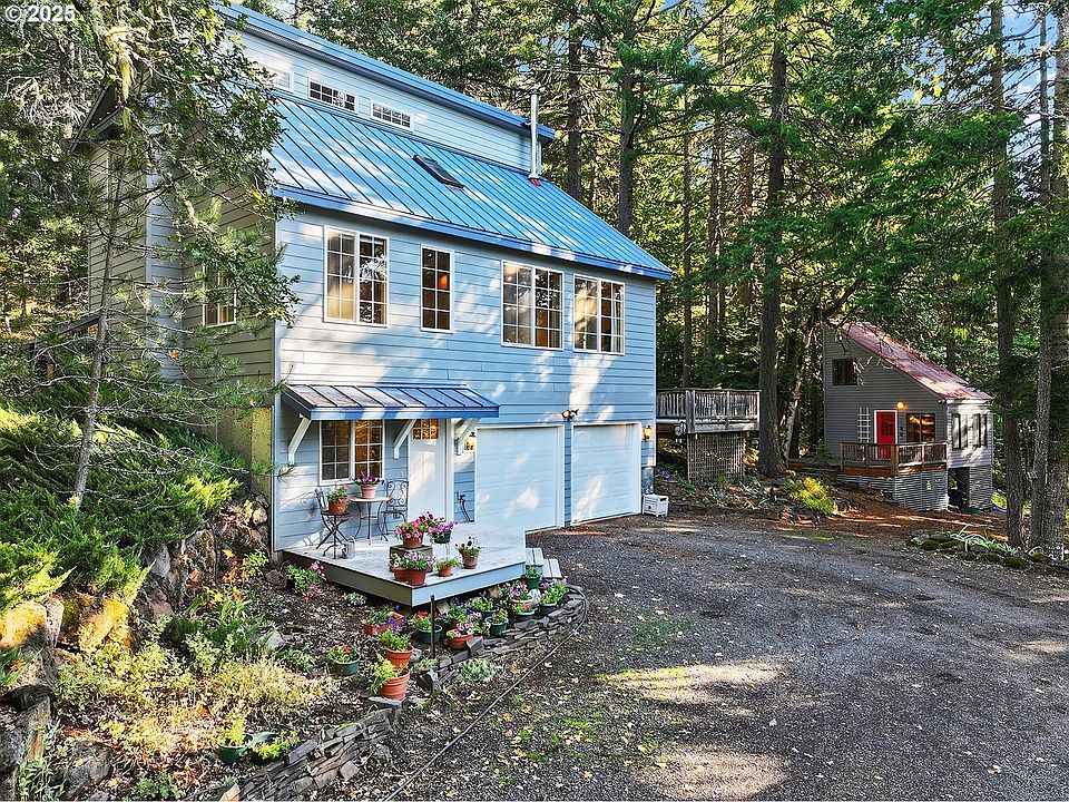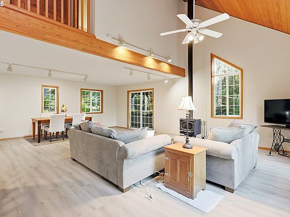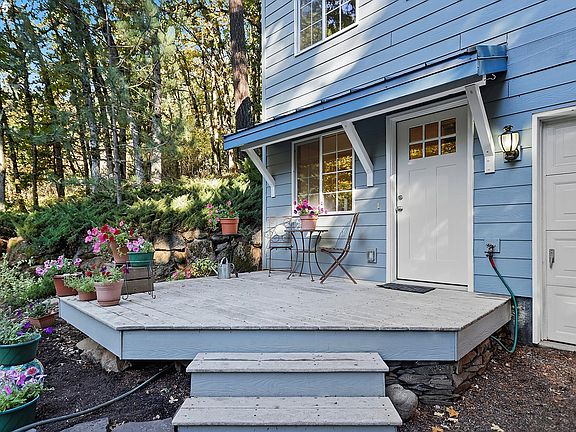 Idyllic location on 5 wooded acres only 2.5 miles from town. Additional, adjacent 6.01 acre lot available at an additional cost would comprise a total of 11.06 acres. With both lots, the total property should be able to qualify for timber classification. Buyer or buyers agent to investigate the benefits, options and requirements of the timber classification program. The property consists of a 2 BR/2 BA home built in 1999 as well as 216sf separate ADU with loft sleeping built in 1978 by a Portland architect. The vacant lot has a 1000 gallon, buried cistern curently not in active use. The lot will not be offered separately until the house has sold and is only available with the house property at present (See aerial in photos). Vacant lot is listed at $275,000. Package pricing is an option. Make an offer. Perfect getaway in the woods 2.5 miles from White Salmon and all the Gorge has to offer.