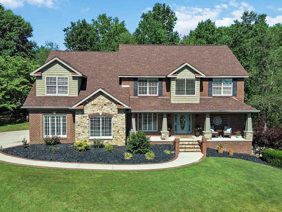 Stunning Craftsman style brick home located in a sought after subdivision sits on a park like setting of 1.92 acres +/- in a cul-de-sac and offers 5 bedrooms, 4.5 bathrooms, 2 story open living room with stacked stone fireplace with gas logs, open kitchen, dining room with coffered ceiling, gorgeous laundry, master suite with electric fireplace, full finished basement, upper two car and lower 1 car garages, upper covered deck off the kitchen and a lower covered patio off the basement living area. The home offers space for everyone. Large treed back yard has high-end play area with shredded rubber ground and a sand box. Great neighborhood with wonderful neighbors. Convenient to schools, shopping, within 3 miles of nearest boat launch. Within 15 minutes of Lake Cumberland Regional Hospital. Owner/Agent