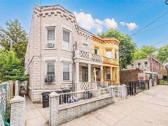 This exceptional corner brick two-family home in Cypress Hills is perfect for both investors and end-users! Lot size 25x100; Building size 22x60. The first floor offers 4 bedrooms, 1 full bath, 2 living areas, and access to a spacious backyard. The second floor boasts 5 bedrooms, 1 bath, 2 living spaces, and a private balcony. Enjoy high ceilings, abundant natural light from multiple windows, and excellent east-facing exposure. The fully finished basement has a separate entrance. This well-maintained home is move-in ready, offering strong rental income and low annual property tax of just $6,541. Located just minutes from public transportation and major amenities, this is an unbeatable opportunity to own a solid, income-generating property in a fast-growing Brooklyn neighborhood.